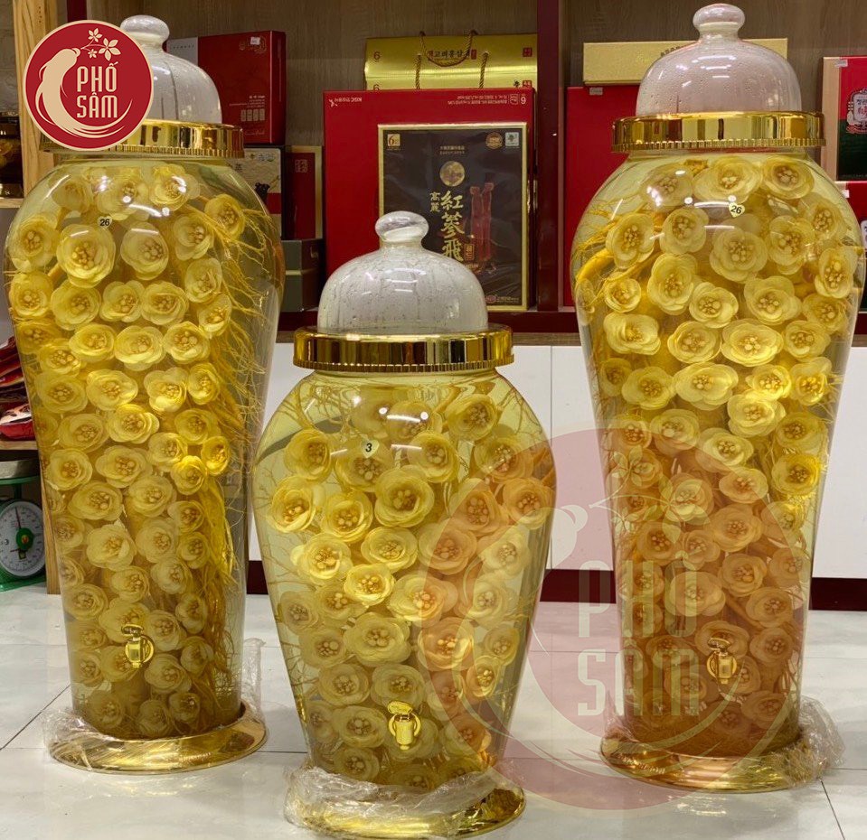 Trong bình gồm : - 17 củ sâm tươi loại 3 củ 1kg mặt phía sau . - 5kg sâm tươi tết thành Hoa Sâm tinh tế và đọc đáo . - Bình Thuỷ Tinh Hàn Quốc Cao Cấp . Bình được thiết kế biếu tặng trong 2 ngày mới làm ra được bình. Để được tư vấn liên hệ : 0906.009096 Mr Tuấn.