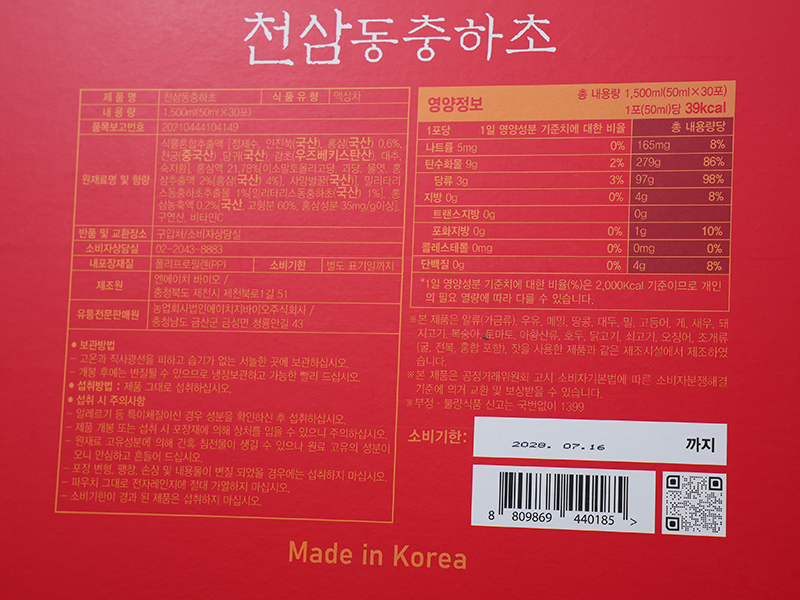 Nước Hồng Sâm Đông Trùng Hạ Thảo Hàn Quốc DKG hộp 30 gói x 70ml